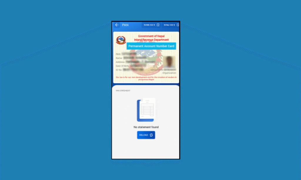 The Permanent Account Number is a unique 10 digit alphanumeric identifier issued by the Government of Nepal, primarily by the Inland Revenue Department “IRD“. It serves as a tracking tool to monitor the financial transactions of individuals and institutions. Essentially, it helps the government ensure tax compliance and transparency in income related matters.